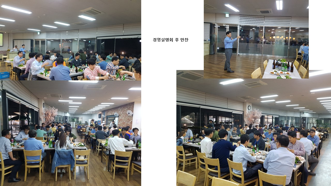 2016년 3분기 경영설명회가 지난 10월7일(금요일) 흥덕IT밸리 세미나룸에서 진행이 되었습니다. 3분기까지의 회사 전반적인 경영상황에 대한 발표와 CEO 당부의 말씀 순으로 진행이 되었으며 설명회 종료후 임직원 석식 및 교류의 시간을 가졌습니다.